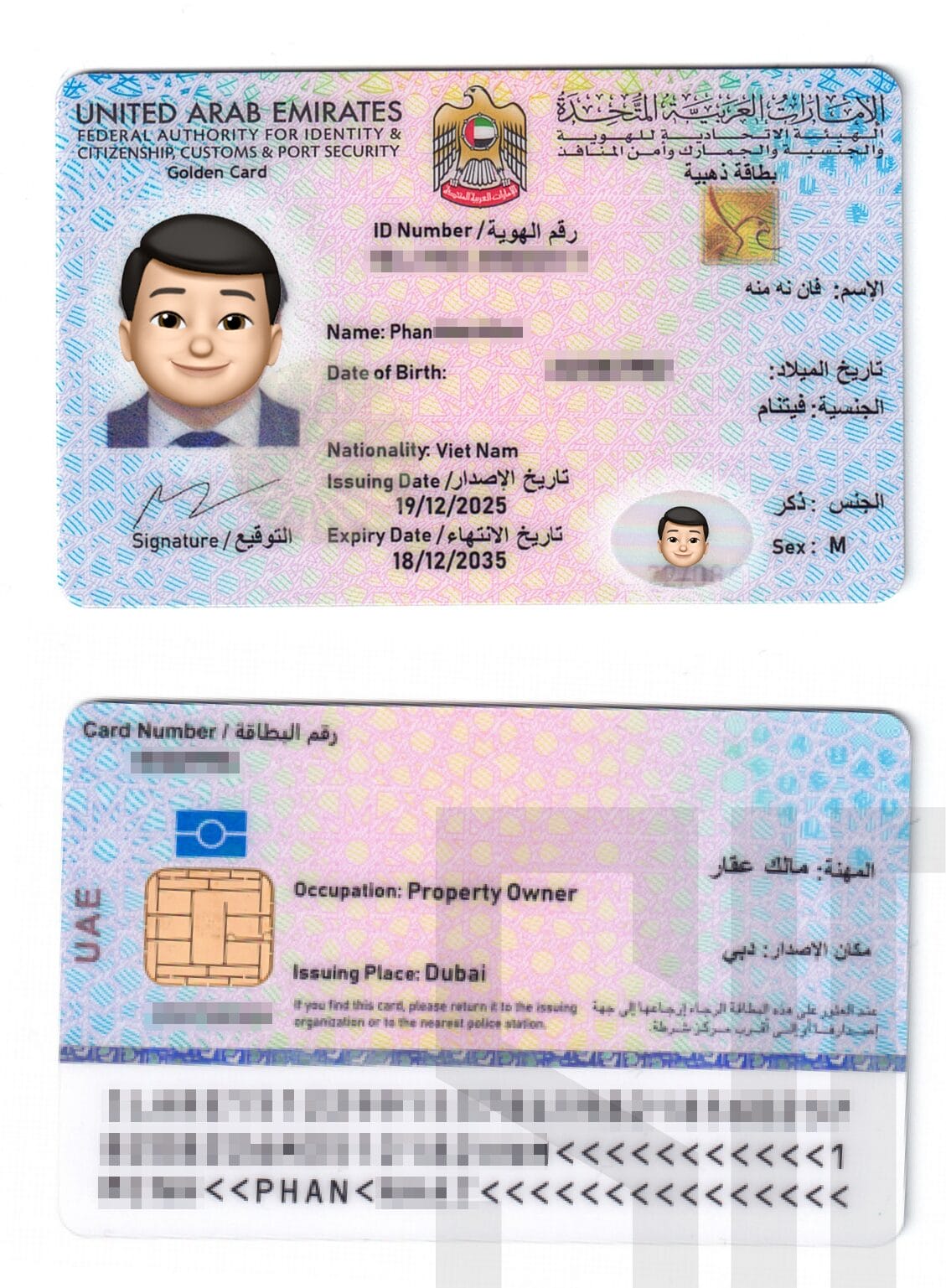• Ngày 24/12/2025: Anh R.P. tiếp tục nhận Thẻ Emirates ID. Dự kiến sau 7 ngày, toàn bộ thành viên gia đình anh nhận Golden Visa UAE và Thẻ Emirates ID.