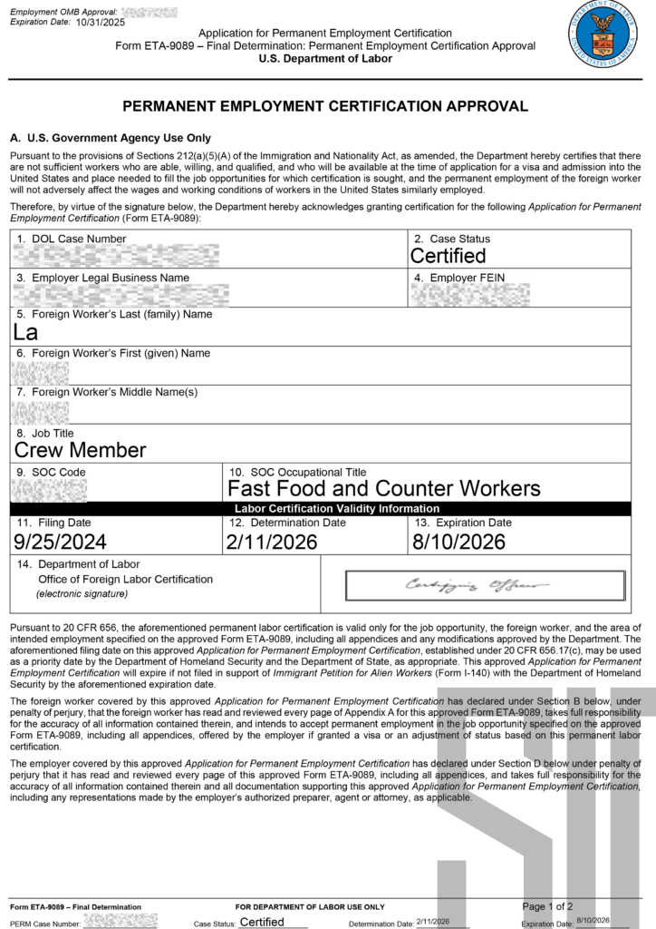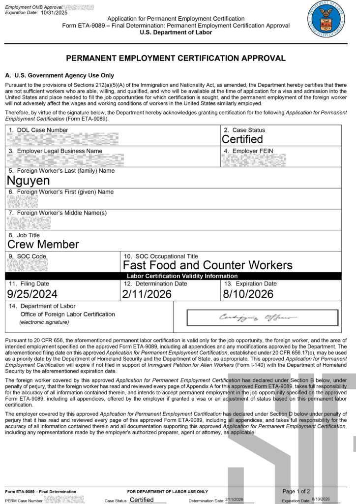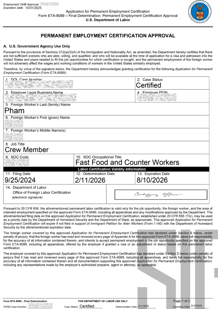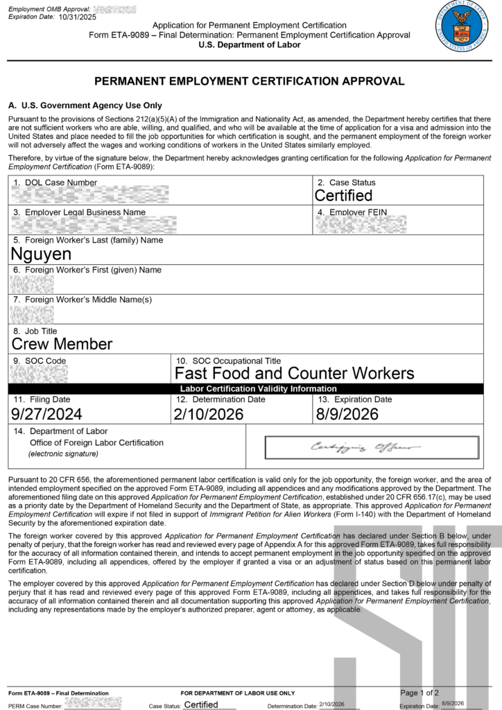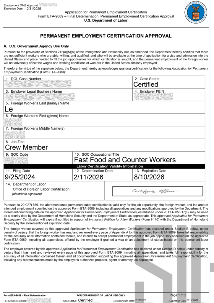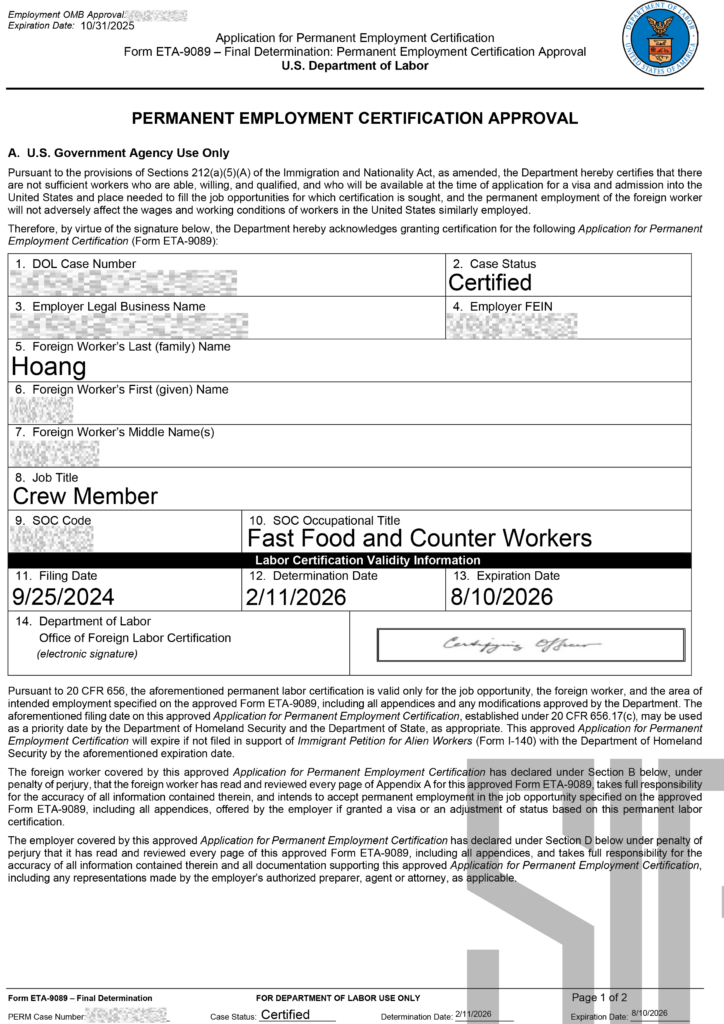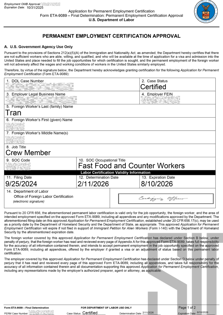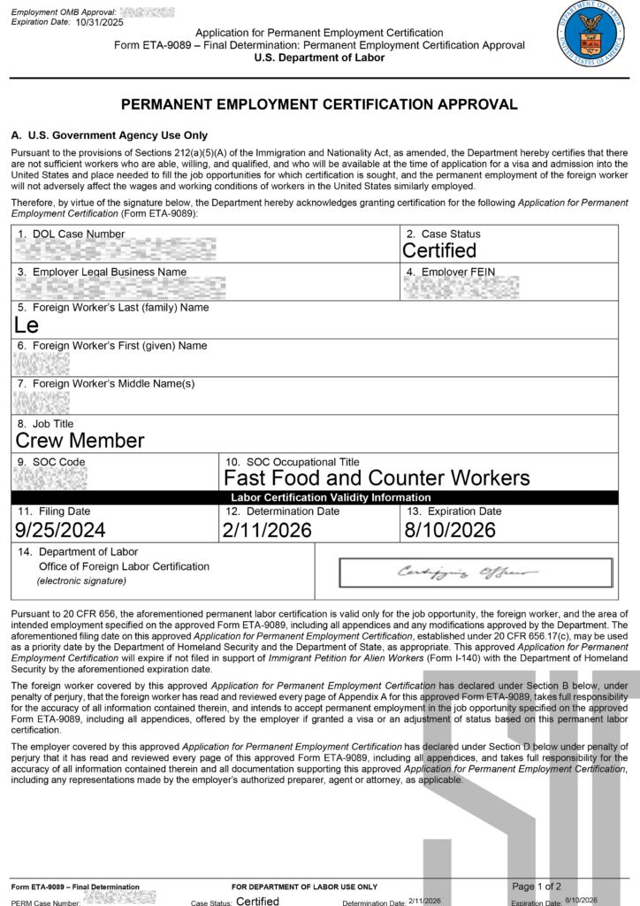 Trong không khí hân hoan của những ngày cận Tết Bính Ngọ, SI Group và khách hàng bất ngờ đón “cơn mưa” 12 LC Approval EB-3 từ Bộ Lao động Hoa Kỳ (DOL). Đây không chỉ là món quà Tết đầy ý nghĩa dành cho gia đình của các khách hàng mà còn minh chứng cho sự kiên trì và quy trình vận hành xử lý hồ sơ chuyên nghiệp của đội ngũ SI Group.