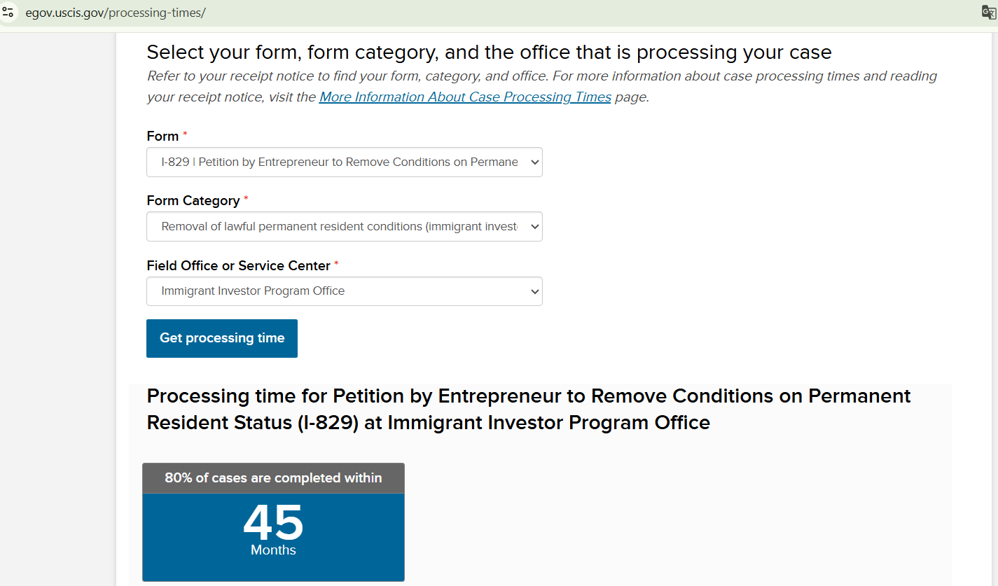 Thời gian xử lý Mẫu đơn I-829 (Đơn xin xóa điều kiện thường trú)