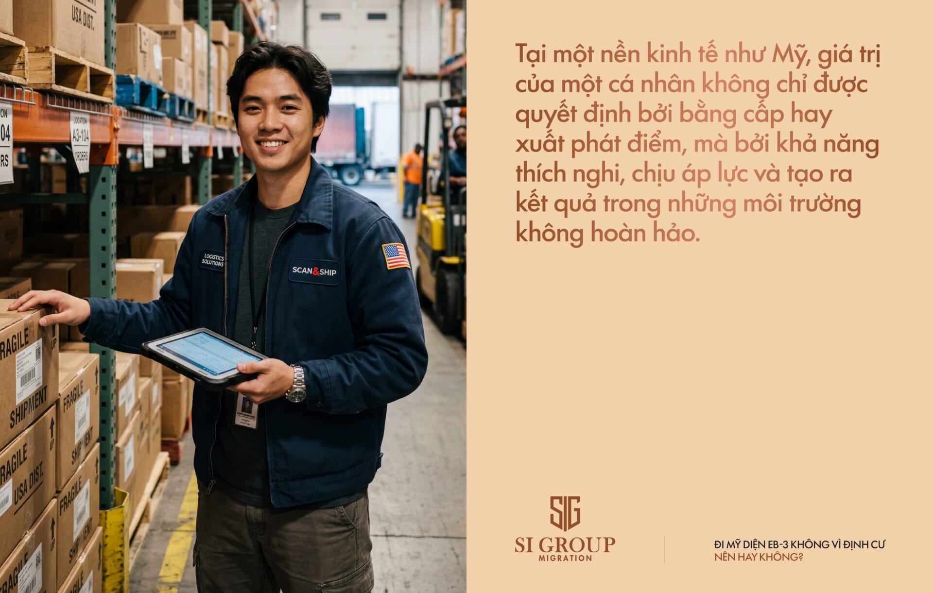Trong nhiều năm, EB-3 gần như bị đóng khung trong một hình ảnh rất cụ thể: Một con đường dành cho các gia đình muốn định cư tại Mỹ, chấp nhận bắt đầu bằng những công việc lao động phổ thông để đổi lấy sự ổn định lâu dài. Cách nhìn này không sai, nhưng nó vô tình tạo ra một ranh giới vô hình, khiến người trẻ gần như không bao giờ đặt EB-3 lên bàn cân khi nghĩ về tương lai của mình. Với họ, Mỹ gắn liền với giảng đường, với bằng cấp quốc tế, với những vị trí văn phòng có lộ trình rõ ràng. Những hình ảnh như nhà máy, kho vận, dây chuyền sản xuất không nằm trong “kịch bản thành công” mà họ được dạy để theo đuổi. Và chính vì vậy, EB-3 bị xem như một lựa chọn “không dành cho mình”, chứ không phải một lựa chọn “không phù hợp”.