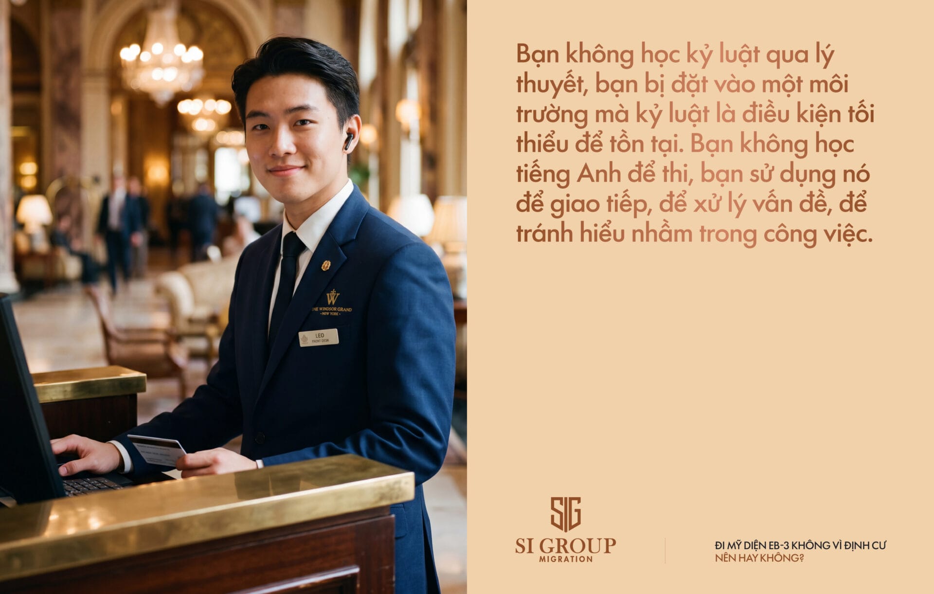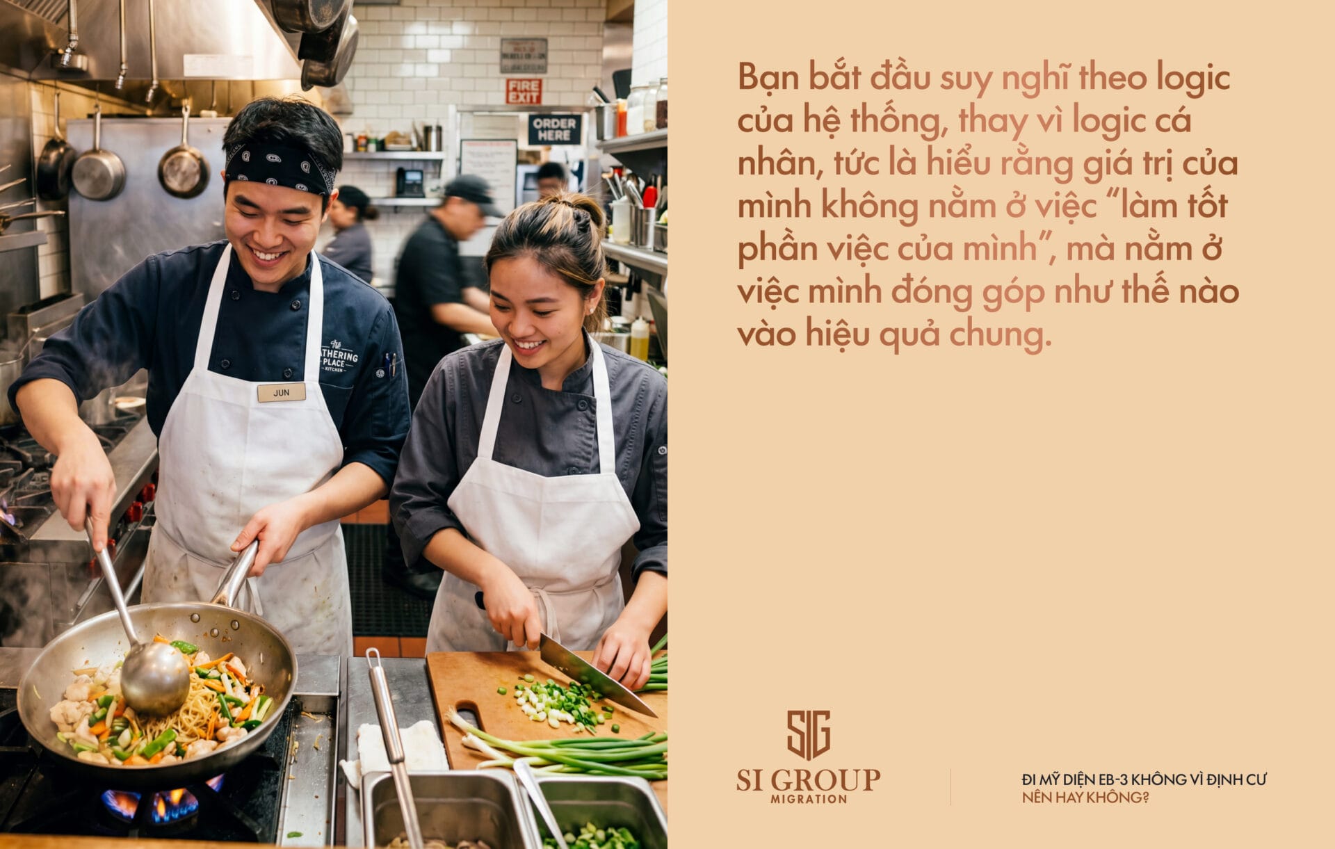 Vì vậy, nếu nhìn EB-3 dưới góc độ này, giá trị của nó không nằm ở vị trí công việc ban đầu, mà nằm ở hệ thống mà bạn được đặt vào. Đó là một môi trường không được thiết kế để “nuôi dưỡng”, mà để “lọc”. Và chính quá trình đó, dù không dễ chịu, lại là thứ tạo ra sự khác biệt rõ ràng giữa những người chỉ có trải nghiệm quốc tế trên giấy tờ và những người đã thực sự vận hành trong một môi trường quốc tế.