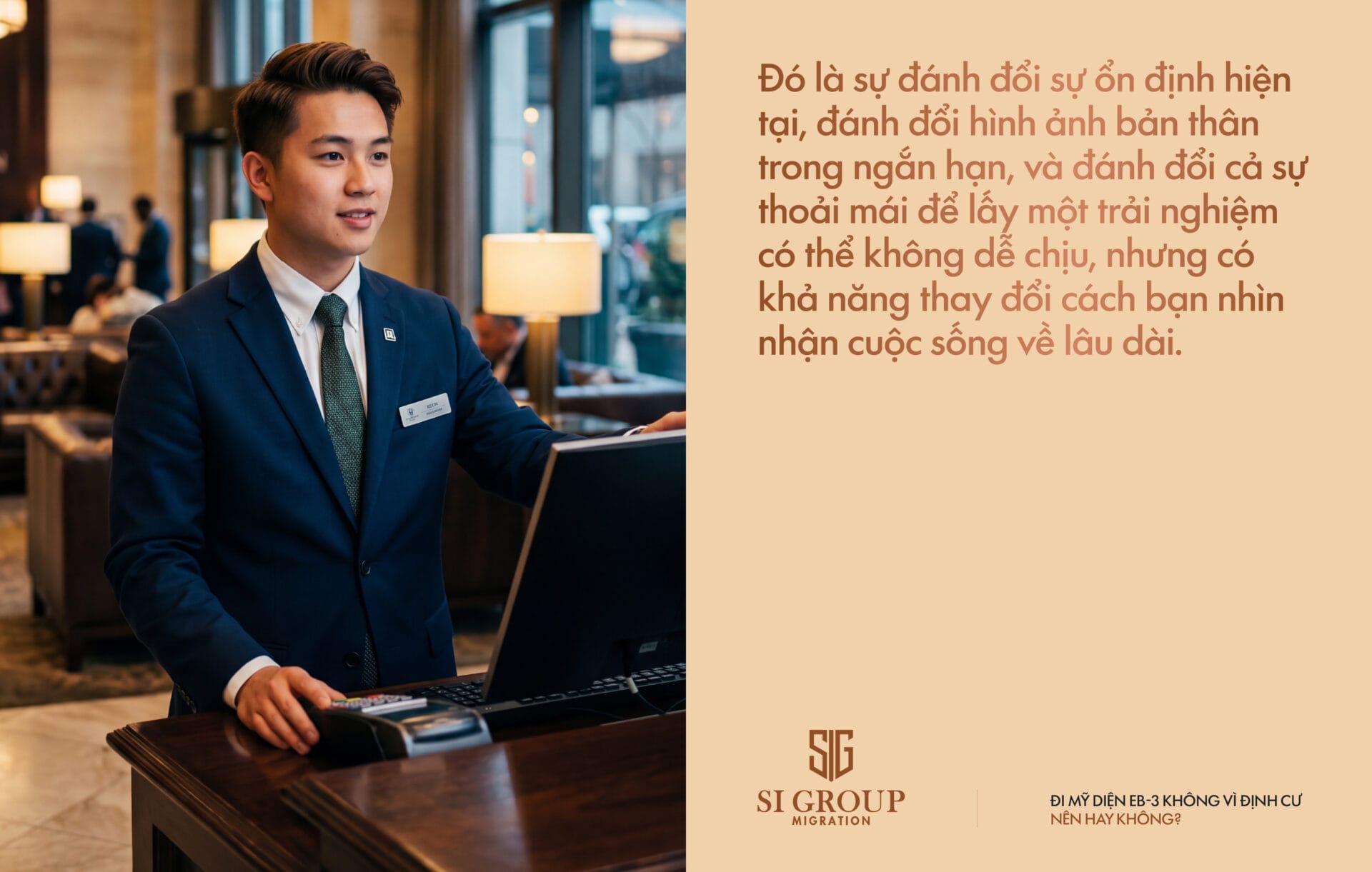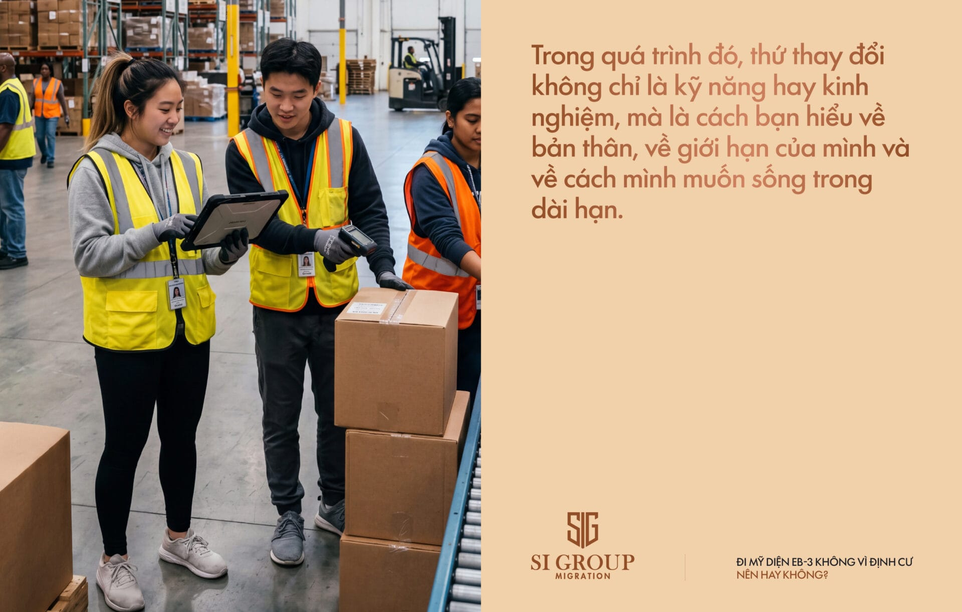 Chính vì vậy, EB-3 không phải là một tấm vé đổi đời, mà là một môi trường thử thách. Và nó không dành cho những người đang tìm kiếm sự dễ dàng, hay một con đường ít rủi ro. Nó chỉ phù hợp với những người chấp nhận đánh đổi. Đó là sự đánh đổi sự ổn định hiện tại, đánh đổi hình ảnh bản thân trong ngắn hạn, và đánh đổi cả sự thoải mái để lấy một trải nghiệm có thể không dễ chịu, nhưng có khả năng thay đổi cách họ nhìn nhận cuộc sống về lâu dài. Nói một cách thẳng thắn, EB-3 không phải là lựa chọn dành cho tất cả. Nhưng chính vì vậy, với những người phù hợp, nó lại trở thành một trong số ít những con đường có khả năng tạo ra sự khác biệt rõ ràng, không phải ngay lập tức, mà theo thời gian.