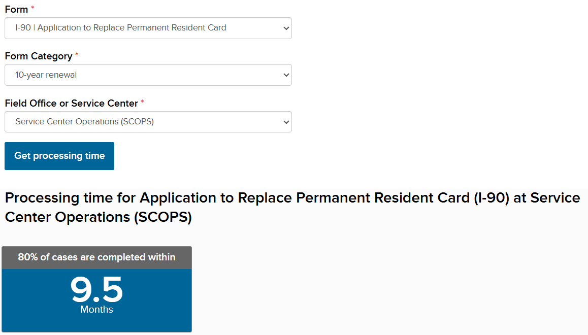 Sau khi USCIS nhận được hồ sơ xin gia hạn Thẻ xanh 10 năm, quý vị có thể phải chờ 9.5 tháng để hồ sơ được xử lý. Quý vị có thể kiểm tra thời gian xử lý mới nhất trên website USCIS.